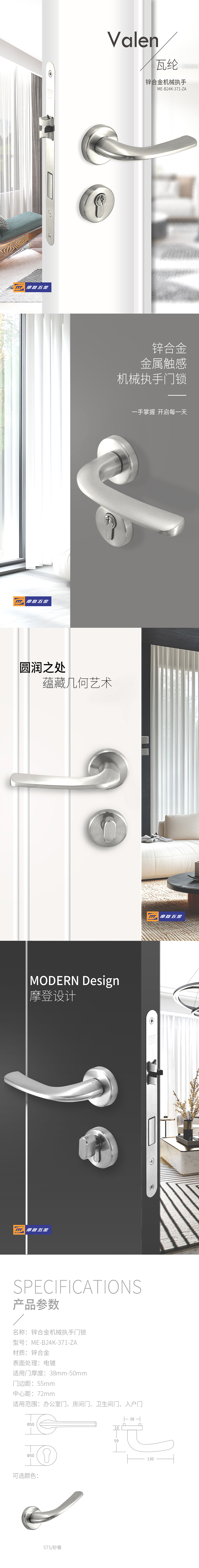 • 產(chǎn)品系列:鋅合金分體門鎖